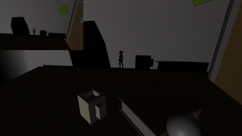 Help the shadow character (controlled by one player on the keyboard) to the exit of each level. To help them the other player can manipulate shadows by moving objects around in VR.
